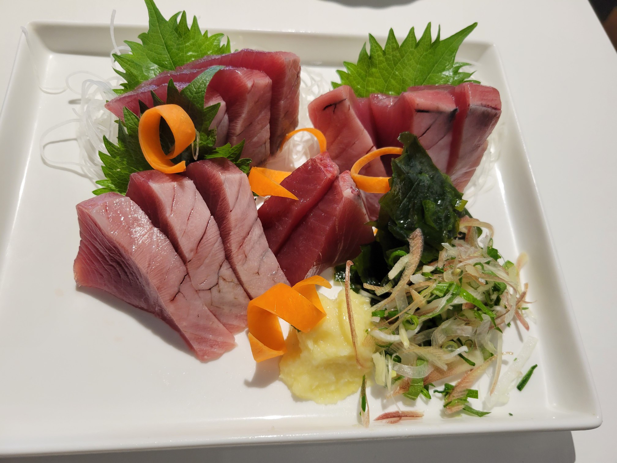 撮影では、市場食堂できれいに盛り付けられたお刺身を