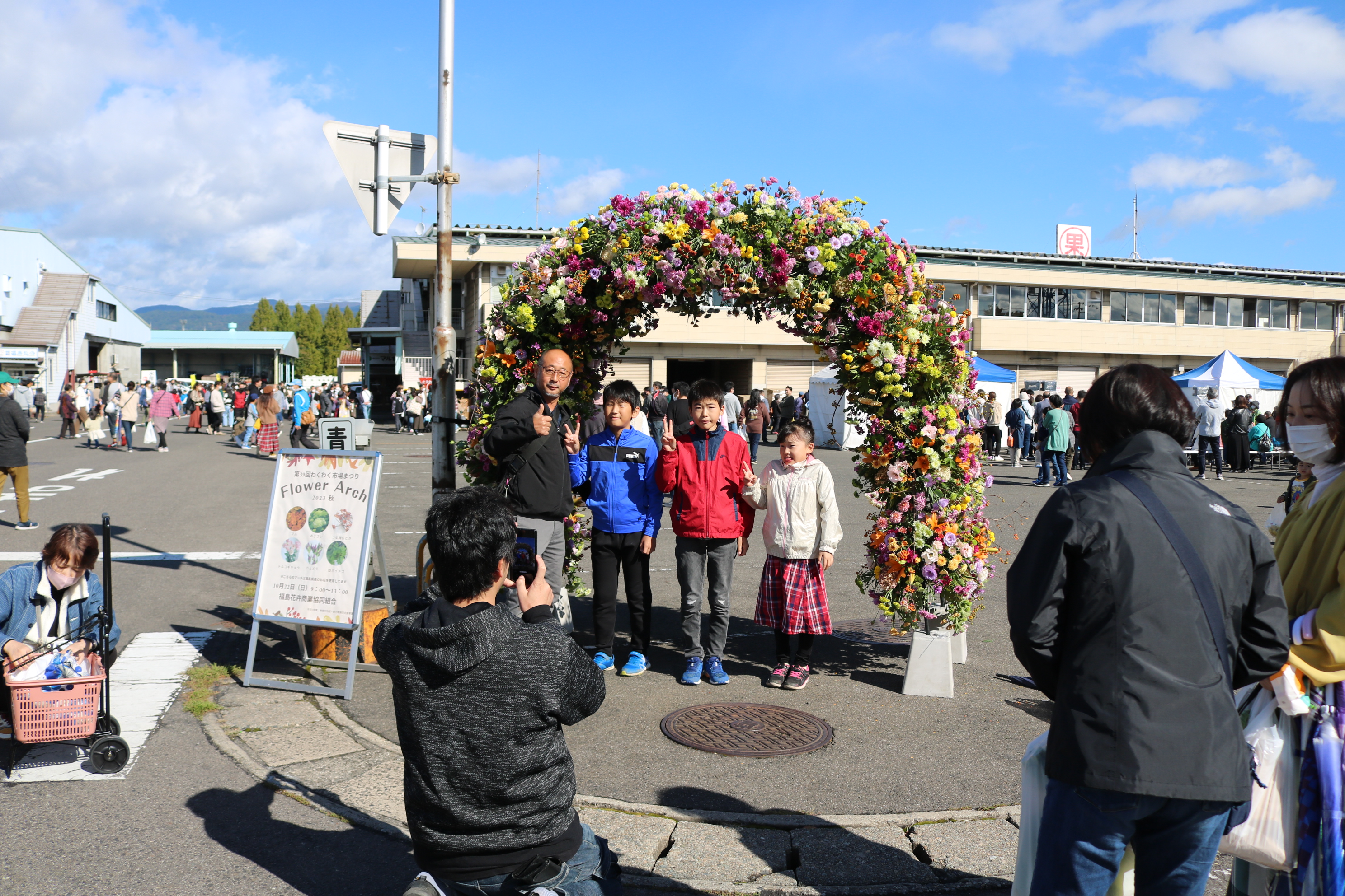 花のアーチも設置され、より華やかな市場まつりのオープニングとなりました。
